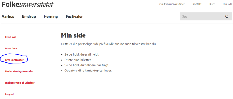 1) Klik på Nye kontrakter, i menuen i venstre side: