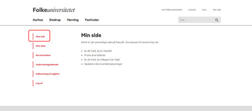 3. Nu er du inde på 'Min side', hvor du i højre hjørne skal trykke på 'Mine hold'.